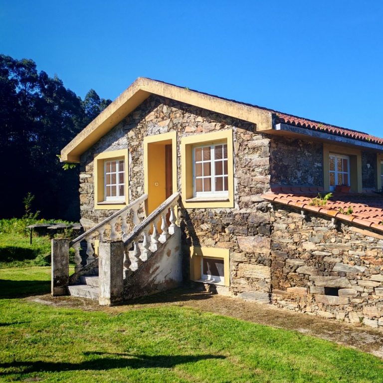 Se vende casa rural de piedra en Oza dos Ríos (A Coruña). Finca soleada con 2 viviendas adosadas: la principal (107 m²/planta) lista para entrar a vivir, con 4 habitaciones, gran salón y cocina con lareira y horno de piedra; la segunda (52 m²/planta) para reformar.